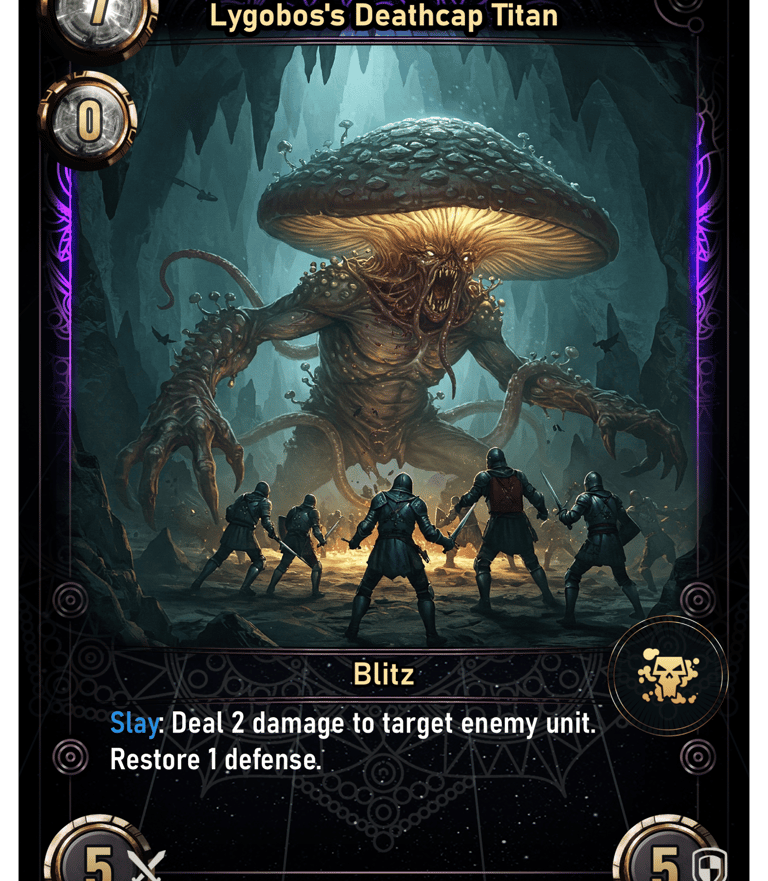 Dive into thrilling skirmishes with our competitive and lore driven trading card game. Every battle drive fate towards a new path. Watch as the outcomes of your games shape the setting and future releases!